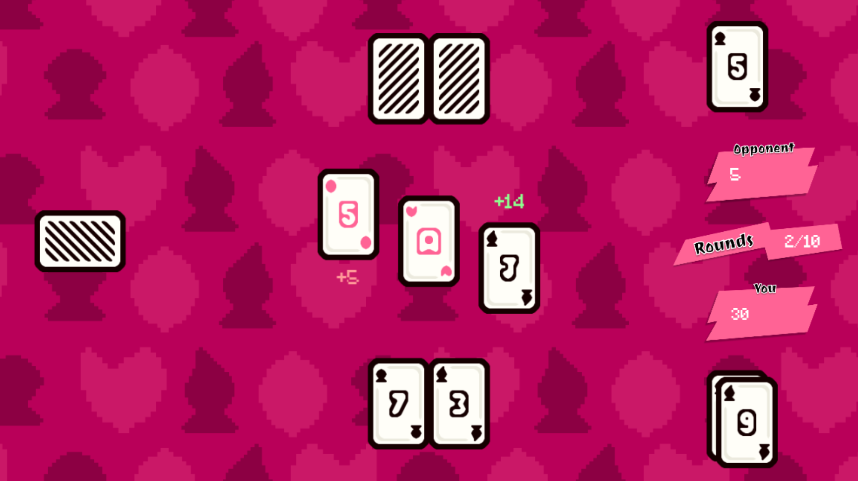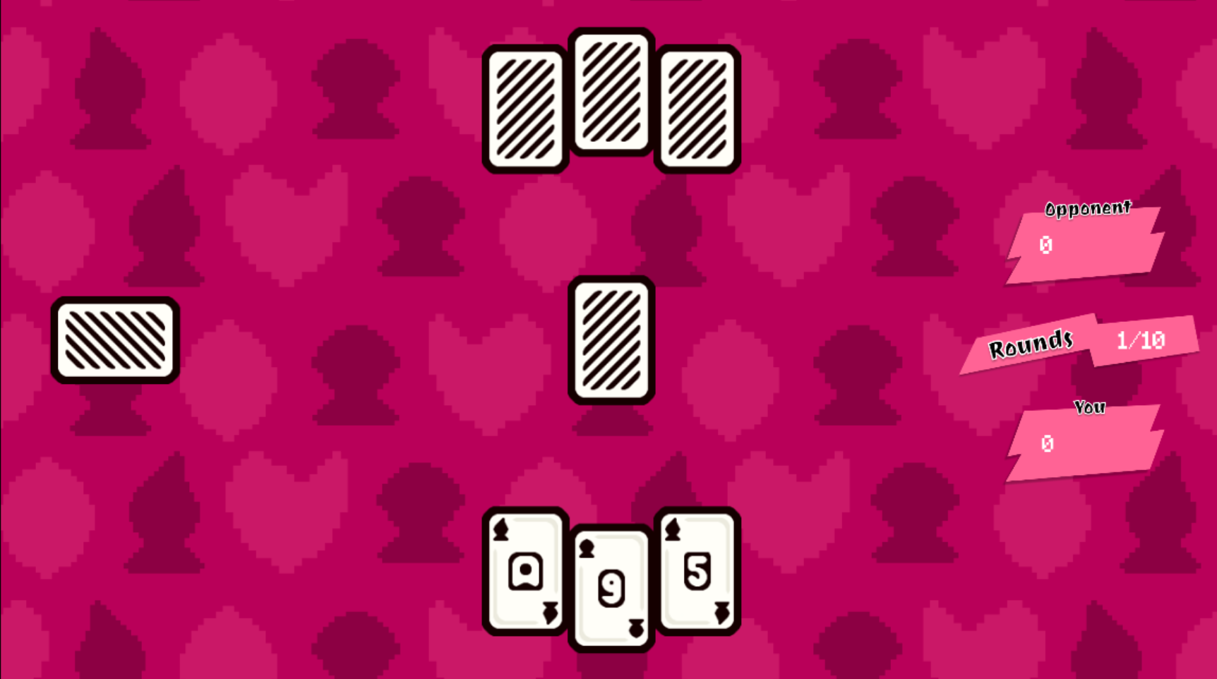 Game functions alright but I'm not sure I understand the point of the blackjack mechanic. If you can only select 1 card and you can't see the face down dealer card, then there's no real option when choosing which card to play. You just play the highest card each time regardless of suit.