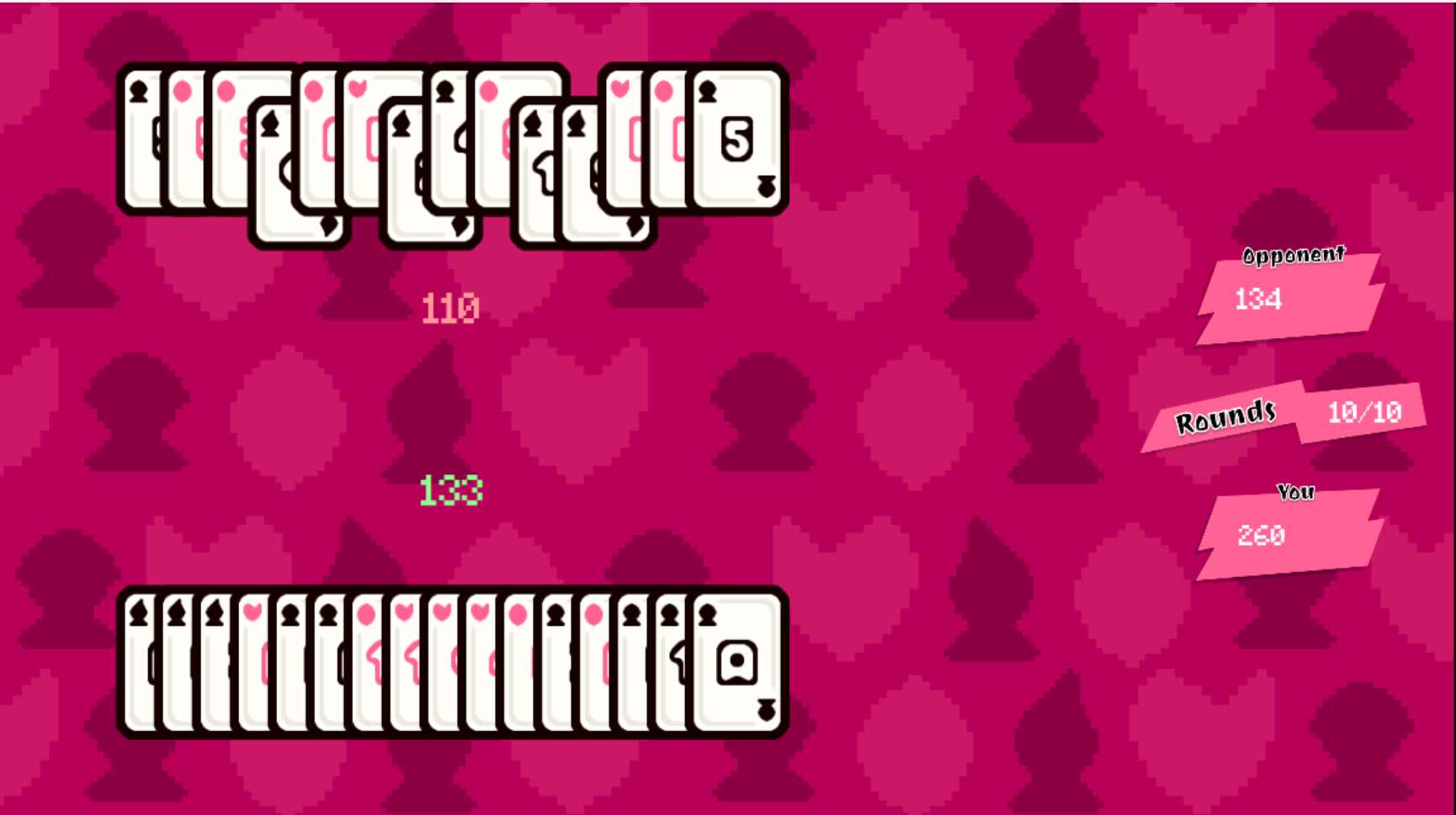 Yeah its weak in term of game mechanics, I made this mainly to learn how to randomize de cards, the deal and all that stuff, the only other way to play is to play allot of the same suit.